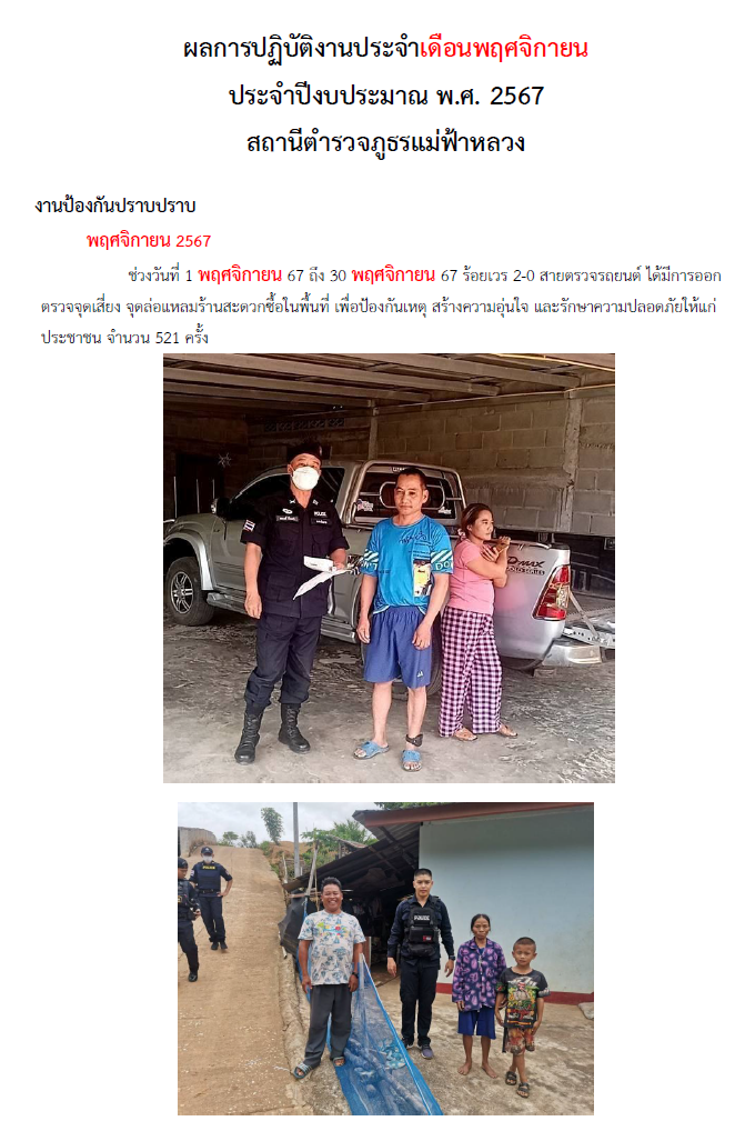 ผลการปฏิบัติงาน เดือนพฤศจิกายน 2567 30 พฤศจิกายน 2567 โดย admin / งานป้องกันปราบปราม 1-30 พฤศจิกายน 2567