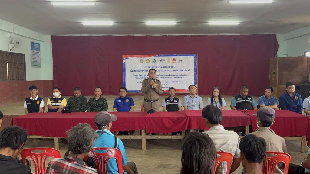 สภ.แม่ฟ้าหลวง ได้จัดพิธีเปิดโครงการดำเนินงานตำบลยั่งยืน เพื่อแก้ไขปัญหายาเสพติด แบบครบวงจรตามยุทธศาสตร์ชาติบ้านพญาไพรเล่าจอ ม.6 และบ้านแม่หม้อม.7 ต.เทอดไทย อ.แม่ฟ้าหลวง จ.เชียงราย โดยมี นายเชาวลิต กิตติชัยพานิช ปลัดอำเภอเจ้าพนักงานปกครองชำนาญการ/ปลัดอำเภอฝ่ายความมั่นคงเป็นประธานในพิธี