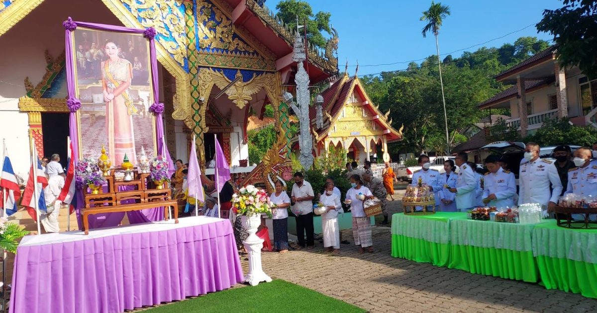 พ.ต.ท.รวมสิน ปิยะสันติ์ รอง ผกก.ป.สภ.แม้ฟ้าหลวง ร่วมพิธีทำบุญตักบาตรถวายเป็นพระราชกุศล เนื่องในโอกาสวันคล้ายวันเฉลิมพระชนมพรรษา สมเด็จพระนางเจ้าสุทิดา ฯ พระบรมราชินี 3 มิถุนายน 2566 ณ วัดห้วยน้ำขุ่น ต.แม่ฟ้าหลวง อ.แม่ฟ้าหลวง ฯ