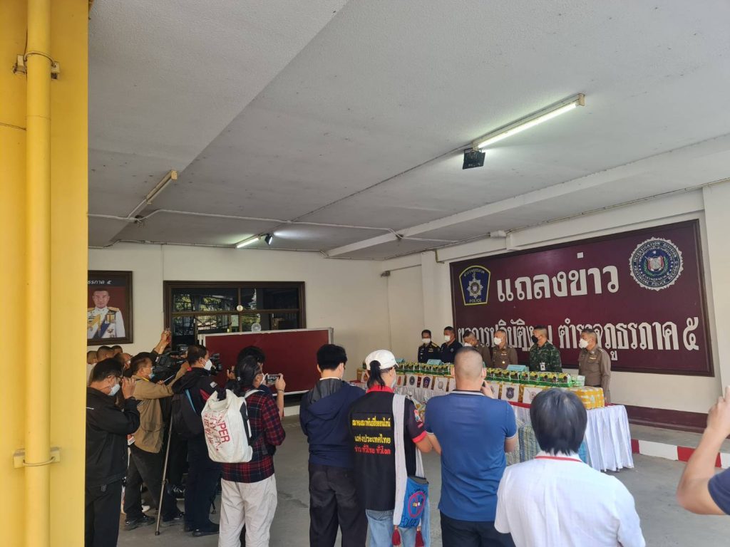 สภ.แม่ฟ้าหลวง วันจันทร์ที่ 13 ก.พ. 66 เวลา 09.00 น. พ.ต.อ.สงกรานต์ สันวงค์ พร้อม จนท.ชุดจับกุม ร่วมแถลงข่าวผลการปฏิบัติงานจับยาเสพติด จำนวน 4.6 ล้านเม็ดและไอซ์ 138 กิโลกรัม ณ ใต้ตึกสืบสวน ภาค 5