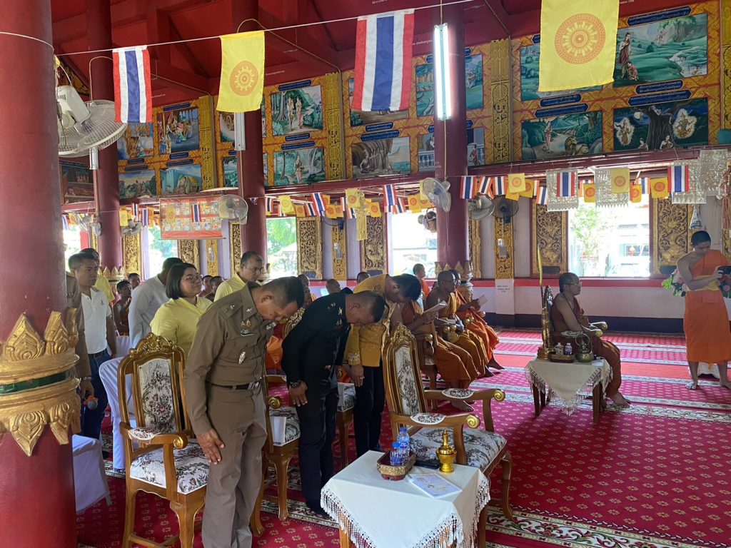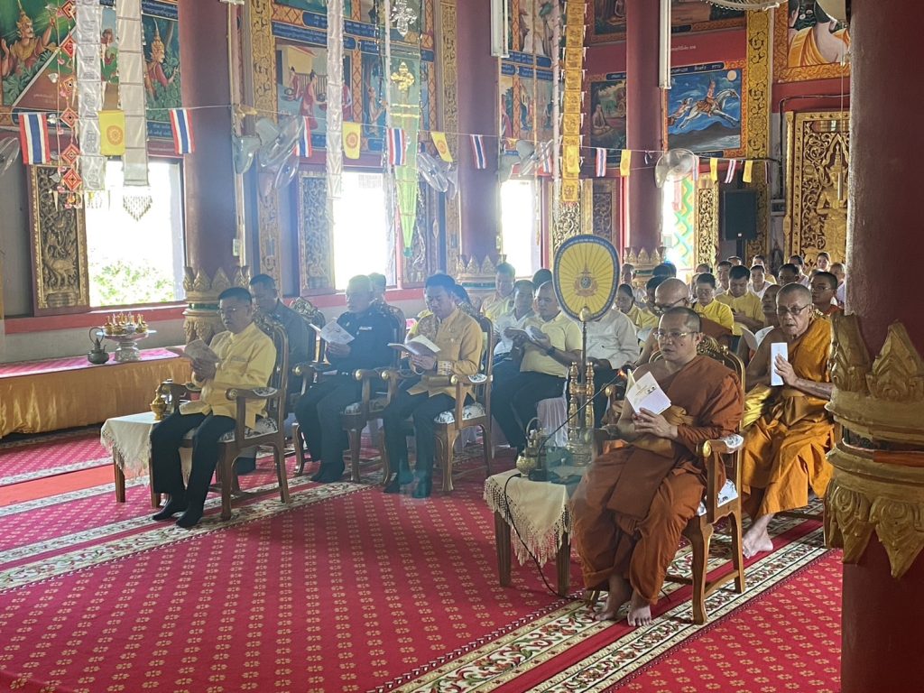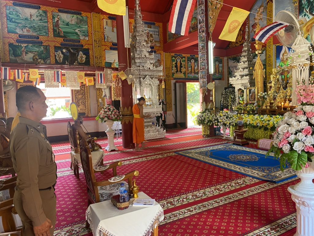 พ.ต.อ.สงกรานต์ สันวงค์ ผกก.สภ.แม่ฟ้าหลวง มอบหมายให้ พ.ต.ท.เจษฎาวัฒน์ สัจจานันทพันธุ์ สว.อก สภ.แม่ฟ้าหลวง เข้าร่วมพิธีเจริญพระพุทธมนต์ถวายพระพรชัยมงคลแด่พระบาทสมเด็จพระเจ้าอยู่หัวและพระบรมวงศานุวงศ์ ณ วัดห้วยน้ำขุ่น ม.1 ต.แม่ฟ้าหลวง อ.เเม่ฟ้าหลวง จ.เชียงราย