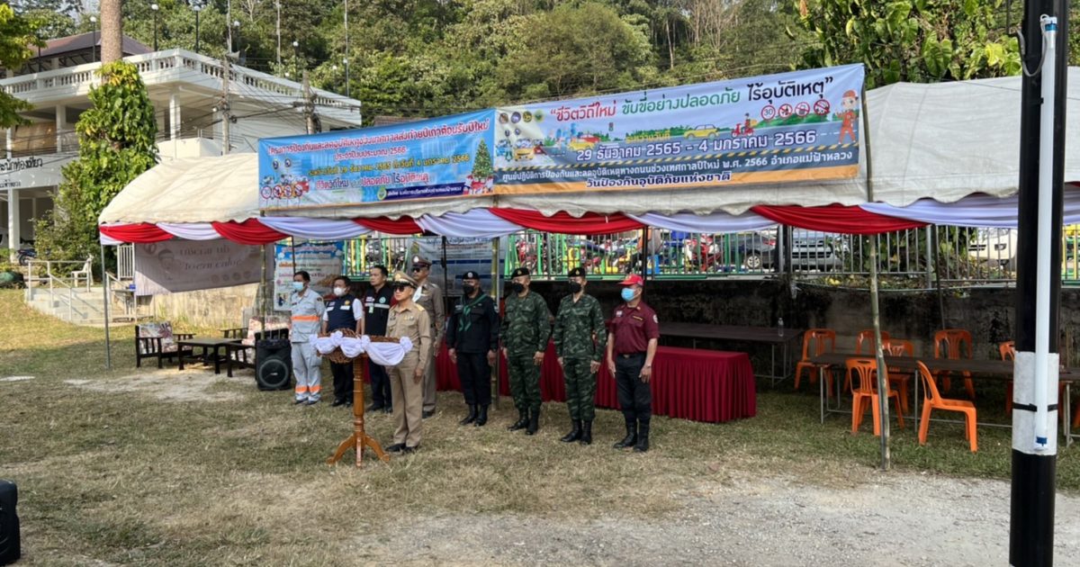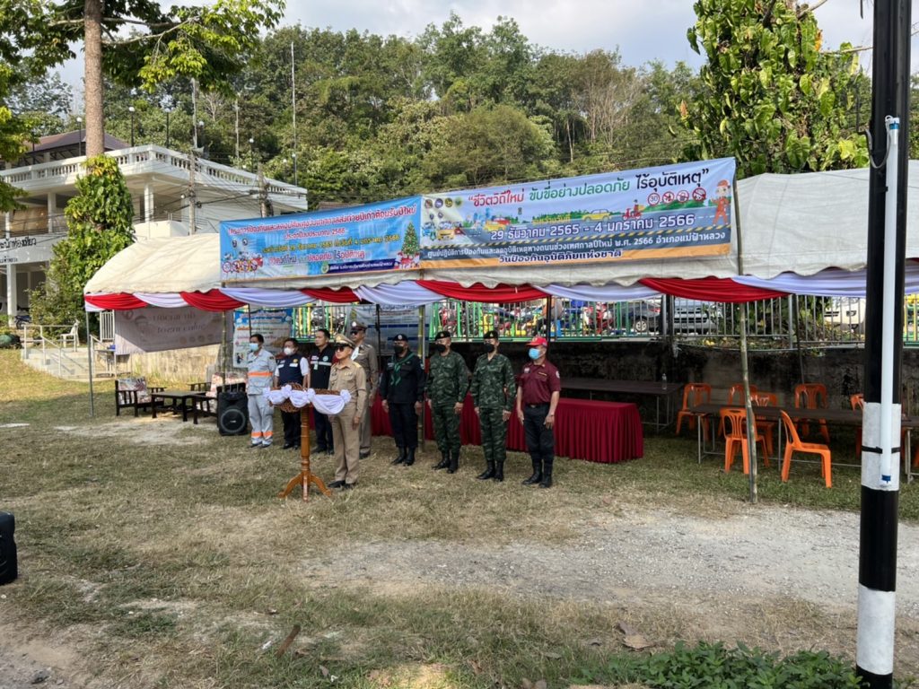 พ.ต.ท.รวมสิน ปิยะสันต์ รอง ผกก.ป. สภ.แม่ฟ้าหลวงพร้อมร้อยเวร 20 สายตรวจตำบลแม่ฟ้าหลวงและชุดเคลื่อนที่เร็วได้ร่วมเปิดโครงการป้องกันและลดอุบัติเหตุทางถนนช่วงเทศกาลปีใหม่ ระหว่างวันที่ 29 ธันวาคม 2565 – 4 มกราคม 2566 ร่วมกับ ทหาร, ชรบ, กรมการปกครอง , อบต.แม่ฟ้าหลวง, สาธารณสุข และกู้ภัย อบต.แม่ฟ้าหลวง ณ จุดตรวจบ้านห้วยน้ำขุ่น หมู่ 1 ต.แม่ฟ้าหลวง อ.แม่ฟ้าหลวง จว.เชียงราย